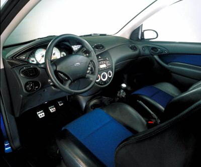 Interior Blue or red cloth seating surfaces with black leather trim