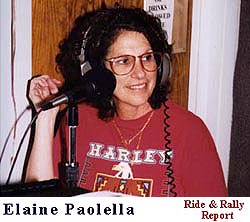 Elaine started riding 10 years ago to keep up with Bob. She rides a Harley '95 FXDL. |