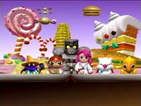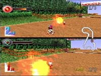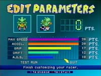 -Story Mode There are a number of tracks throughout the game. The sidelines and background look very good aside from some pop-up. Also the track itself has a lot of clipping and other mistakes. For some these are minor problems but should have been corrected seeing many of the flawless titles that Square has put out in the past. Aside the fact that the graphics are pretty cutesy the control is very good. Turning is easy enough to pull off and controller reaction is sharp and fast. Learning certain tricks like "Drifting" are good additions and help with the steering. Most tracks have right angle turns and the drift helps out a lot. In the sound department this game could have used a little work. The tunes are not all that great and sound effects sound bad in places. There are a few downsides to this game but there are some upsides. For one, the multiplayer is great and being able to select your character's ability makes numerous combinations at your fingertips. Also there are a whole lot of secrets to uncover, in all there are over eight secret characters. I would say that if you are an adult looking for a racing game for the younger audience pick this up. Even though the difficulty might be kind of tough it will probably be a good buy. For the rest of us? Maybe a rental for the Mario Kart lovers that need a new challenge. -NICK STEINHAUER