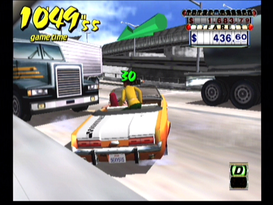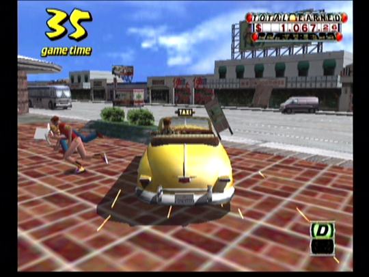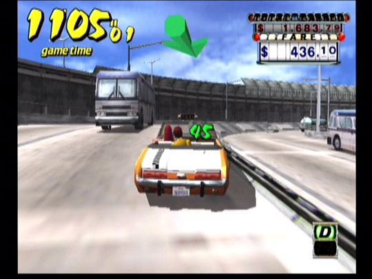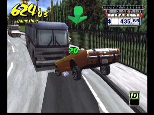 Another bad thing is that this game could have easily been so much more. I thought it out and came up with some new features that would have made it a perfect game. First off, a two-player mode would have been great. Seeing who could get the most money in the allocated time or who could race to a selected spot first would have been great. Also a Quest Mode kind of thing would have been awesome. Start out as a crummy little first-time driver in a small city and begin to progress till you get to a city like New York. This game is still sooooo sweet that these are minor but I am just suggesting that it would have been cool to have them included.