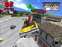 You can experience full and utter bliss just "cabbing" around the two cities but for more advanced players there are a few additions to Crazy Taxi that give you an incredible experience. For starters you can adjust many different options like the traffic, time difficulty, and time setting. By adjusting the traffic setting to its maximum level, you are asking for some pumped up action. Another option to help expert players and gamers looking to make more money are different techniques that you can pull off when trying to make it to your customers stop. Techniques like the Crazy Dash (Speed Boost), Crazy Drift (Power-Slide), and Limit Cut (Ultra Speed Boost). The Limit Cut is a move that is not mentioned in the manual but is different than the Crazy Dash. Both the Crazy Dash and Crazy Drift are mentioned in the manual but in order to pull off a Limit Cut let off the gas while moving then shift into reverse then back into drive and press the gas. What should happen is your cab should blast forward with great momentum. This move greatly reduces the amount of time needed to get from point A to point B.