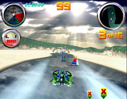 With all of this power and great games there has to be at least one racing game in the bunch? Oh but there is and it is called Hydro Thunder. Hydro Thunder is a boat racing game that spans environments from all over the world. It was ported to the Dreamcast from its original home in the local arcades. Almost everything that I loved in the arcade version is near perfect in the Dreamcast game. There is no other video-game system out today that will give someone a better experience then the Dreamcast. The Dreamcast is able to pull off the arcade-crisp graphics and the wonderful framerate found in the arcade. On the other hand there are still a few things that could have been done to make Hydro Thunder on the Dreamcast a perfect port.