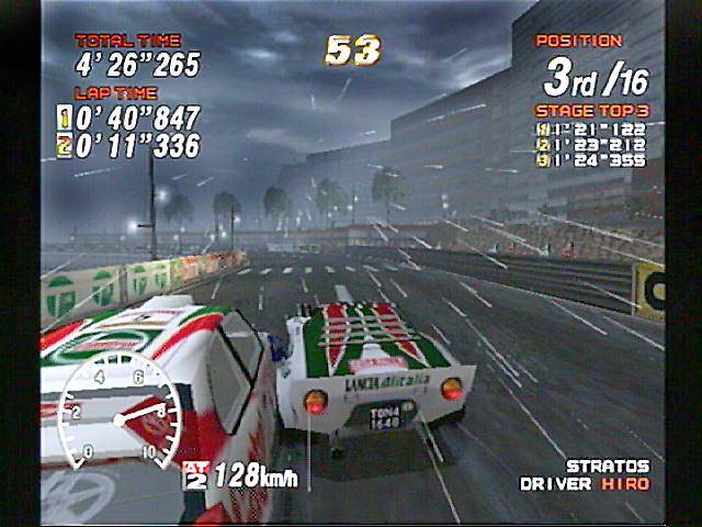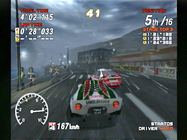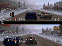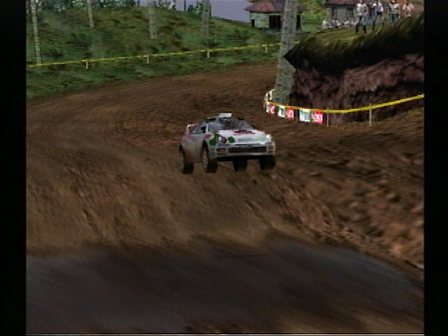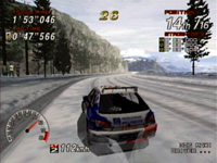 Two other features distinguish Rally racing from closed-circuit racing. The first is the actual courses themselves known as Special Stages (SS). "Special Stages are held on closed sections of public road, each car driving at full speed ensuring this the most exciting part of rally racing."- SEGA RALLY 2 manual. Each day a number of these Special Stages are raced on and the driver with the quickest overall time at the end wins. An actual race is a site to see and many people from around the world come to see them. Considering the fact that most of the races are held on public roads the spectators can stand anywhere they please. No seats or fences are blocking their way nor are there security guards standing guard at these events. There, that was a little background on actual Rally racing. It seems that it is pretty dangerous not only for the drivers but for the audience as well.