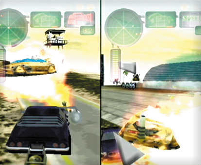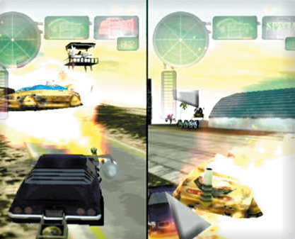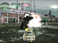 The physics system is something to throw up at. Do not expect Gran Turismo physics because the steering in this game is more like dancing. It is so loose that the slightest touch sends your car careening in that direction. This makes it really hard to aim your rockets or other weapons that do not have heat-seeking abilities. After mastering the control, though, it becomes second nature. Of course in order to master these controls it takes about two years, seven months, and four days.