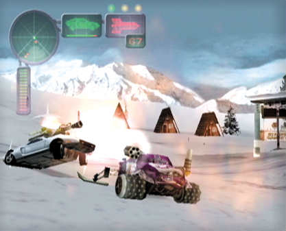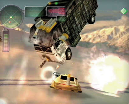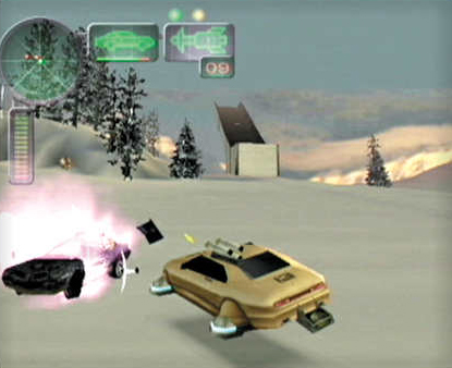 V8: Second Offense offers some new weapons, levels, and cars but it lacks so much that it seems that it was rushed to the public. Many factors suggest this especially in the graphics. Textures usually look pretty good, and the cars all look very detailed but there is a lot of draw in in the distance and there is a lot of slowdown during big rocket fire. Also, and probably the most annoying glitch in the game, is the fact that you can get stuck in buildings. While riding up the roof of a building I all of a sudden fell into the center of it and could not get out. Another time I was on the end of a cliff and fell into the side of it and could see half my car but I could not get loose. Those are just some of the incredibly annoying occurrences. Also I found that my car can magically go straight threw some of my opponents for no apparent reason. Is there a new ghost power-up Luxoflux? I did not see one in the manual.