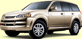 For 2002, Isuzu has added the good-looking Axiom to its line-up of SUVs. With sleek body styling and contouring, the Axiom’s distinctive shape – mine, oh so sexy, in Ebony Black – featuring a large front grill, tapered body profile, blacked-out windows and lots of chrome certainly catches the eye.