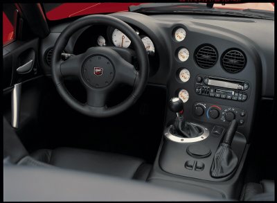 Dramatic styling cues include lowered hood lines, swept-back fenders and deep-cut side scallops, reminiscent of the original, yet giving the Viper a fresh look. Inside, from a race-derived, two-seat cockpit, the driver looks over a highly functional instrument panel with a center-mounted tachometer and a 220-mph speedometer. A traditional pushbutton starter refires old-time sports car memories.