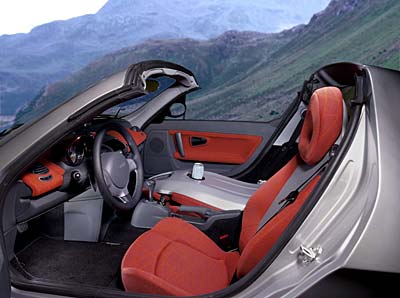 The purist interior typical to sports cars is comparatively spacious. The feeling of space is given by strongly sloping side windows and windscreen.