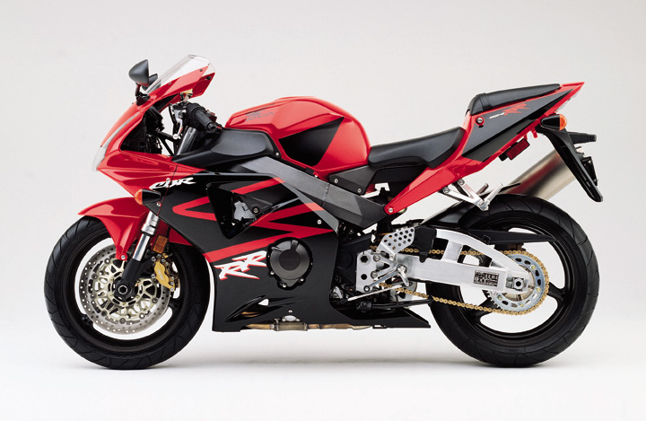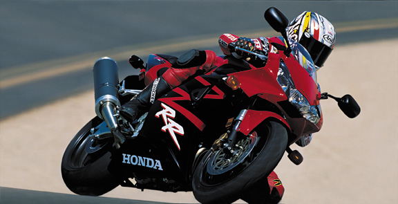 Specifications Model: CBR954RR On Road Price; $10,955.00 Engine Type: 954cc liquid-cooled inline four-cylinder Bore and Stroke: 75mm x 54mm Compression Ratio: 11.5:1 Valve Train: DOHC; four valves per cylinder Carburetion: PGM-FI with automatic enricher circuit Ignition: Computer-controlled digital with three-dimensional mapping Transmission: Close-ratio six-speed Final Drive: #530 O-ring-sealed chain Suspension Front: 43mm inverted HMAS cartridge fork with spring preload, rebound and compression damping adjustability; 4.3 inches travel Rear: HMAS Pro-Link single shock with spring preload, rebound and compression damping adjustability; 5.3 inches travel Brakes Front: Dual full-floating 330mm discs with four-piston calipers Rear: Single 220mm disc with single-piston caliper Tires Front: 120/70ZR-17 radial Rear: 190/50ZR-17 radial Wheelbase: 55.1 inches Rake (Caster Angle): 23.45 Trail: 97mm (3.8 inches) Seat Height: 32.1 inches Dry Weight: 370 pounds Fuel Capacity: 4.8 gallons, including 0.9-gallon reserve Colors: Metallic Titanium/Black