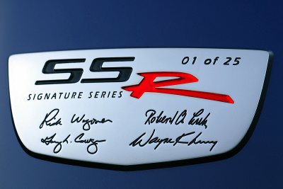 - Signature Series badge on the "waterfall" interior panel between the bucket seat uppers (each chromed badge will be numbered and signed by two or more GM or supplier team members directly associated with the SSR program)