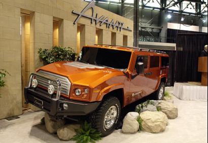 The Avanti Studebaker is more than two feet longer than the H2, and features a rounded hood, distinct front grille, and unique body molding. It also includes several features not found in the GM offering, including power- sliding rear doors and a power-retractable rear roof.