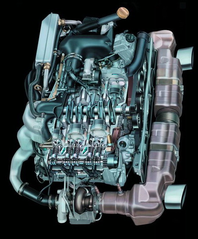 Turbocharging for maximum power Two turbochargers switched in parallel are crucial to the supreme power and performance offered by this outstanding six-cylinder. Drawing in air through a single-unit air filter housing, the turbochargers first compress the flow of air and then guide the ongoing stream through an intercooler in each of the wheel houses behind the rear wheels, after which the air flow comes together again in front of the throttle butterfly operated electrically. As a result the performance offered by the new top-of-the-range Cabriolet in the 911 model series is virtually identical to that of the Turbo Coupé: with its six-speed manual gearbox featured as standard the open-air Turbo accelerates in 4.3 seconds from 0-100 km/h (Coupé: 4.2 seconds). It then reaches 160 km/h or 99 mph in 9.5 seconds (Coupe: 9.3 seconds) and rockets on to its top speed, with the roof closed, of 305 km/h or 189 mph, which is exactly as fast as the Coupé. Acceleration from 80-120 km/h in fifth gear, in turn, comes in exactly five seconds.