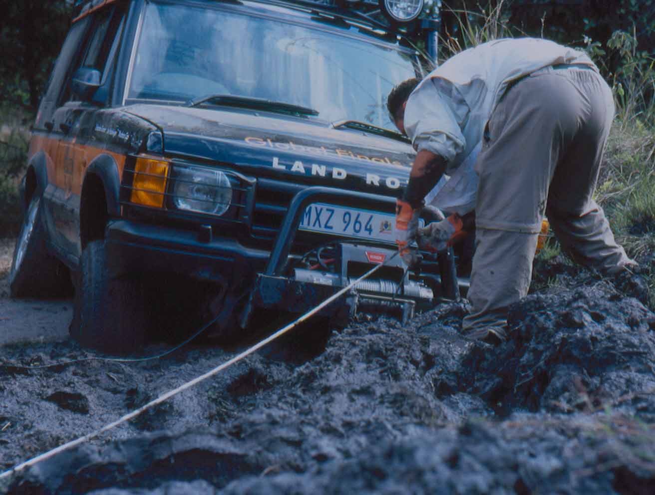 With the blessing of FORD, Land Rover’s parent company, TReK went global in 2001. Countries around the world held national TReK competitions and the winning teams traveled to the Global TReK finals in Land Rover’s archetypal home: Africa. The location was chosen in part because Land Rovers have always been perceived as “the Out of Africa Original”, and because “Africa would provide all the necessary elements of adventure in a spectacular and testing style”. Eleven teams representing all major Land Rover markets faced one another in fifteen different and quintessentially TReK events during 2 days of grueling competition. In addition to the diabolical obstacles dreamt-up by the organizers, competitors also had to contend with Africa’s own obstacles: giraffes, zebras, kudus and even the occasional leopard. High Adventure indeed!