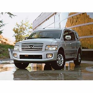 All-New 2004 Infiniti QX56 Revealed. Infiniti, the luxury division of Nissan North America, Inc., officially announced the name of its all-new full-size sport utility vehicle - the Infiniti QX56. Designed to provide luxury on a grand scale, the eight-passenger QX56 features progressive styling, advanced technology, a powerful 5.6-liter DOHC 32-valve V8 engine and a long list of standard luxury features including leather-appointed seating and navigation system. The QX56 will be the first Infiniti model assembled in North America. It is scheduled to arrive at Infiniti dealerships in the spring of 2004 and will be available in two-wheel drive and all-wheel drive models