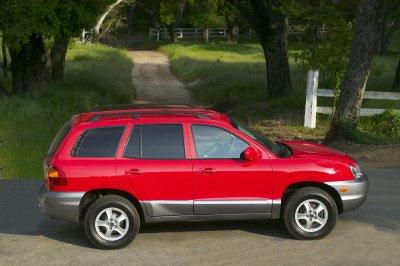 Santa Fe is available in three models; Santa Fe, Santa Fe GLS and Santa Fe LX. All Santa Fe models offer a long list of standard features including air conditioning, 16-inch wheels and tires, privacy glass and four-wheel disc brakes. Power door locks, body-color mirrors and body-color door handles are standard (Santa Fe and Santa Fe GLS, chrome on Santa Fe LX) and the base Santa Fe is equipped with handsome side cladding and a stereo system that includes a CD player and 6 speakers with two front tweeters for a richer sound quality.