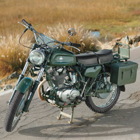 The Condor motorcycles Siegler and his team discovered were built in the mid-'70s for the Swiss Army, which needed rugged and reliable bikes to handle the rigors of the Alps. The bikes, featuring a solid frame and punchy 350 cc kick-start Ducati engine, sped through the twisting mountain roads like a champ.