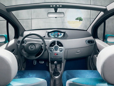 The "shared" instrument panel can be seen by all occupants. Its streamlined design contrasts with the sometimes overloaded instrument panels of classic hatchbacks. Its flowing curves reinforce the welcoming warmth of the interior as a whole while information is centrally concentrated around the smooth dash cowl. Technology is sober and discreet; the LCD display lights up in blue against a black background to echo the Ice Blue bodywork and also for maximum clarity. The satin-finish chrome dial surround echoes the steering wheel finish, the rim around the gear lever bellows, the door handles inside and out, the handbrake knob and the vent controls. The automatic climate control, central-locking control and 4x40W CD player are clustered together in the lower section of the instrument panel.