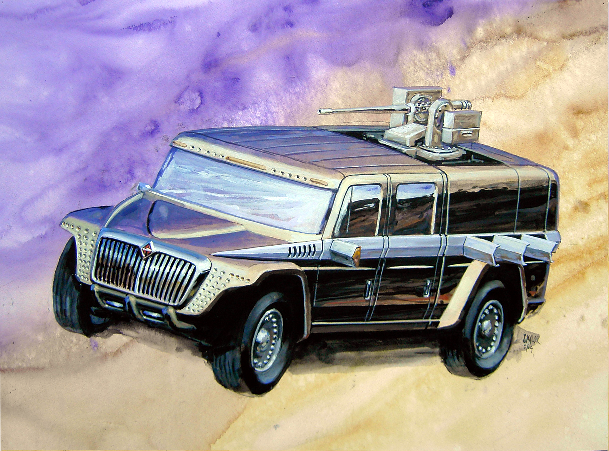Riding in captain’s chairs, the SMARTRUCK III’s four person crew operates an array of ultra-high tech equipment: The Driver is responsible for piloting the vehicle. From a pop-up LCD display, the driver can view the forward-looking night vision camera which extends the driver’s visible range. An inverted LCD mirror allows the driver to monitor the rearward action. The Gunner operates the weapon station control unit, including all weapon system camera feeds, weapon deployment, target acquisition and firing. The Surveillance Operator and the Communications Operator, through their numerous electronic interfaces, will monitor UHF, VHF, military and/or police band radio traffic, track the highly-detailed GPS navigation software, monitor the real-time vehicle diagnostics, control a UAV device and payload, control and view the camera feeds, analyze NBC detection data and engage the electric-shock door handles and other countermeasure controls. Overall crew comfort is a high priority with the SMARTRUCK III. The on-board systems have been organized for efficiency and stowed to maximize crew space. The cabin is air conditioned and includes a center-cab full-reclining sleeper seat. Telematics: Using the latest telematics systems, the SMARTRUCK III and its commercial variations can be designed to maximize uptime for the vehicle, increase fleet productivity and reduce operating cost in several key areas. These include: systems management using GPS for location monitoring; situational updates for tracking supplies; logistics control; full-time vehicle diagnostics; prognostics of predictive failures; embedded training for operators; and systems management for recording vehicle performance. Vehicle Performance: The base vehicle for SMARTRUCK III is an International V-6 powered Crew Cab, 4200 series medium-duty platform. Its exterior reflects design elements of a military HMMWV and can accommodate existing shelter modules. Fitted with an air suspension that allows adjustable ride height, reduces storage space needed during air transportation and improves off-road performance. By recovering a portion of the energy normally wasted as heat by the vehicle brakes, the SMARTRUCK III also boasts a hydraulic launch assist (HLA) that can provide a 25 – 35 percent improvement in fuel efficiency, a 30 percent reduction in emissions while also providing high torque very quickly, even at low speeds.. The massive 37/12.50R20 Michelin XZL tires further SMARTRUCK III’s performance capabilities, offering exceptional traction and handling on varied terrains including snow, sand, mud and highway. Providing 8.5 kW of continuous power, the generator system serves as the primary power source for all add-on vehicle technologies.