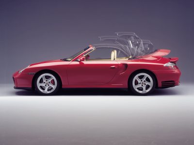 The 2004 Porsche 911 Carrera 4 Cabriolet comes with a fully automatic three-piece top that opens in a Z-configuration and folds down into a compartment behind the rear seat. Unlike most cabriolet tops that expose the inside of the roof lining when the top is retracted, Porsche's Z-configuration keeps the inside of the roof protected at all times, takes up less space when the top if stowed, and provides better protection for the heated rear glass window when the top is down.