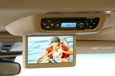 The Acura DVD Entertainment System is also available as an option on Touring Package-equipped models. The 7-inch LCD screen is mounted to the headliner, just behind the front seats for use by rear seat passengers. The DVD player mounts below the standard audio system and plays over the MDX's sound system or through a pair of cordless infrared headphones. The system can be controlled either by using the MDX's audio controls or from the rear seats through the use of a remote control or the screen's control panel.