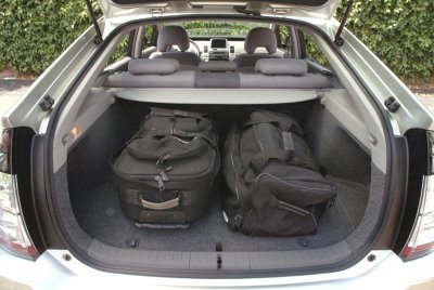 The Prius is rates as a mid-size car. As such, it has excellent rear-seat legroom and an enormous trunk. Set up for carrying passengers, the trunk is rated at 16.1 cubic feet. But like in a hatchback, you can fold the rear seatbacks forward and more than double cargo capacity.