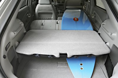 When it comes time to carry cargo, the Maxx makes like an SUV. The sloped rear window may steal a little potential space in comparison to a wagon, but there is still considerably more than is a typical midsized sedan even with the rear seats in passenger position. And that's helped by a moveable horizontal partition that doubles as a cargo screen. Each side of the rear seat folds flat separately, as does the front passenger seat. All seatback load surfaces are made of strong, hard plastic, and long items such as kayak paddles, lumber, or downspout material up to nine feet long fit easily.