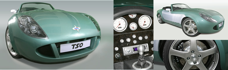 The design team was driven to capture some lines from the 45-year winning history of the brand, yet take the design forward in precision, quality and style. Designed by Damian McTaggart, formerly the designer of TVR's Cerbera, Tuscan and T350, the TSO's lines are exceptionally clean yet aggressive. The design effort coupled classic sculpting techniques for real-time feedback with state of the art CAD techniques for precision and speed.