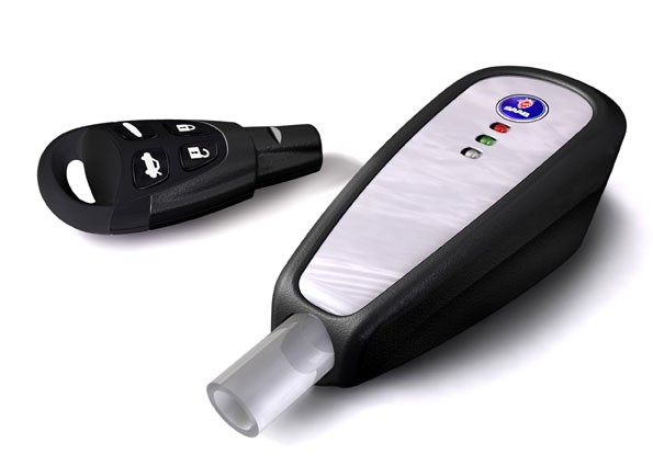 The Saab “Alcokey” concept includes a small mouthpiece in the car’s key fob. A transponder communicates with the car’s electronic control unit, preventing the engine from starting if a breath sample from the driver is found to contain alcohol above legal levels.