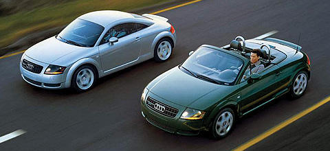 SAFETY: All versions of the Audi TT have dual front and side airbags and front and rear crush zones. The Coupes have a safety cage around the passenger compartment. The RoadsterÕs reinforced windshield frame and built-in roll bars offer equivalent protection to that safety cage.
