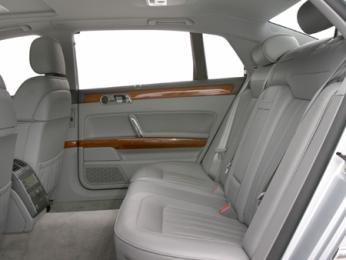 With a 118.1-inch wheelbase and an overall length of 203 inches, the VW Phaeton is a large car. It's in the same class as the S-Class Mercedes and BMW 760i, not the iL. One of the advantages of the extra length is increased rear-seat legroom. We took some friends to dinner with us and they raved about the added legroom in the back. There have been times when we've stuffed them into much smaller cars, so they appreciated the luxury. There are even movable foot rests if you need them.