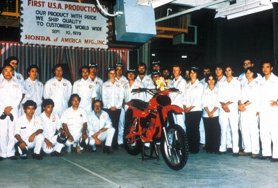 ![]() Honda of America Mfg.'s first associates celebrate the line-off of the first product -- the Elsinore CR250R. |