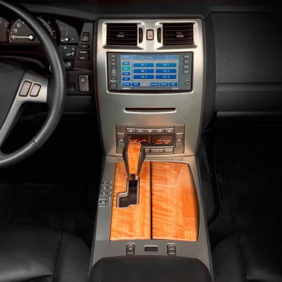 XLR also has a refined interior that allegedly had contributions from Italian jeweler Nicola Bulgari in its design. In fact, there's a "BVLGARI" logo around the speedometer that makes it look like a Bulgari watch. The instrument panel is complete, with six white-on-black instruments. Despite the Bulgari connection, the instruments are not watch-like, nor is there an analog clock, which would have made a perfect tie-in. In the center of the dash is a standard issue navigation screen with audio and HVAC readouts, as well as time and exterior temperature. You tilt the screen to reach the in-dash CD player behind it.