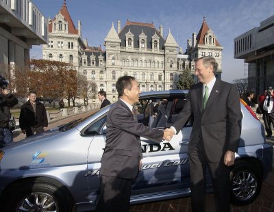 "New York is pleased to partner with Honda to lease these innovative fuel cell vehicles, which utilize emerging technology to significantly reduce energy use, clean our air and help break our dependence on oil," said New York Governor George E. Pataki. "Fuel cells have the potential to revolutionize the transportation and energy industries and we are proud that the State will play a major role in helping to develop the next generation of clean, energy efficient vehicles for commercial use. Our commitment to developing a hydrogen economy and our leadership in promoting the use of clean energy technologies are helping to create new jobs and industries right here in New York. Our efforts will ensure that our businesses and residents continue to reap the economic and environmental benefits of this emerging world market."