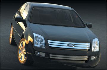 The new Fusion takes a central position between the award-winning Focus and the flagship Five Hundred sedan. As J Mays, group vice president of Design and chief creative officer, puts it, "Even standing still, the Fusion looks like it's ready to burst out of the blocks. The strong, muscular three-bar chrome grille sets the tone for a bold new look that will change the mid-size sedan segment."