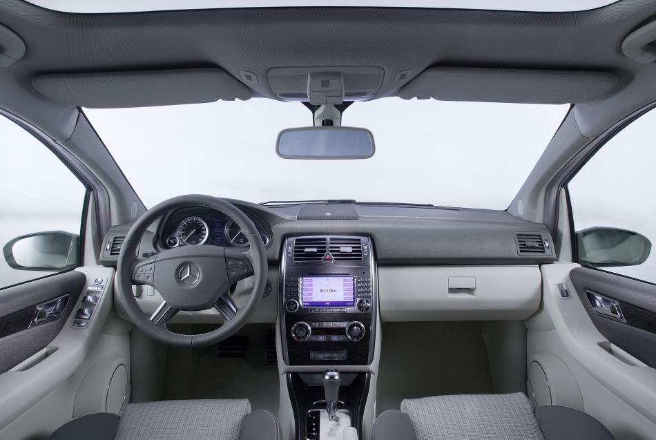 While the instrument cluster and center console are finished in brushed aluminum, the dash, seats and door panels of the Vision B compact sports tourer are covered in a new, high-tech material that resembles the airy lightness of high-quality sportswear. The Vision B also comes with the steering wheel controls that have made easier operation of the audio system, telephone and central display on other Mercedes models. With a 15 cubic-foot trunk, the 1/3-2/3 split folding rear seat of the Vision B can be folded flat to provide more than 48 cubic feet of cargo room.