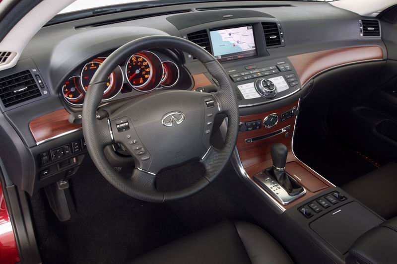The Infiniti M's interior features include genuine Rosewood or aluminum trim, leather-appointed seats, Solar Eclipse instrument lighting system, and available climate controlled front seats, heated power reclining rear seats.