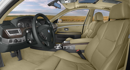 OK, the chassis and engine are wonderful, and the controls can be vexing. How is the interior? Two words: ``comfortable'' and ``spacious.'' If you're expecting opulent, soft-padded seats and a forest of burled wood, look elsewhere, though. The interior design is Teutonically severe, but attractive, with matching leather on the seats and door panels and handsome wood and aluminum trim. The standard front seats are power-adjustable in 20 different parameters; my test car had the optional (at no extra cost) sport seats, which are a touch firmer, more bolstered, and adjustable in merely 16 different ways. Heated seats are standard; an inexpensive and highly-recommended option is a heated steering wheel. BMW also makes motorcycles, which are available with heated handgrips, and so was the first to bring that technology inside. It's wonderful on a cold evening. Rear seat room and comfort are first-class, and this isn't even the long-wheelbase model.