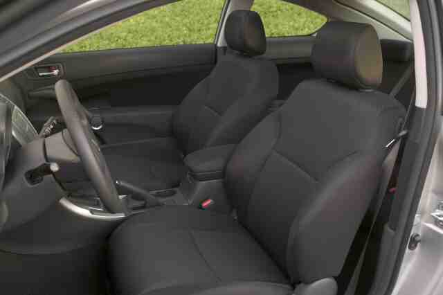 COMFORT: Inside as out, the tC is above its station in design, appointment, and finish. It is also, unlike most small coupes, roomy and versatile, thanks to the long wheelbase and wide track. Given its market position, its target customers are likely have only one car, and the tC can fill the bill quite nicely, thank you. The interior styling is typical contemporary sport-compact, with dark colors offset by bright metal-look plastic trim, but quality fabric upholstery and textured surfaces give the look of a much more expensive car. Instruments are easily visible, and all of the main controls are simple and easy to use - well, excepting the standard Scion-Pioneer audio system, which uses tiny buttons that will be familiar to anyone with an ultracompact MP3 player. But that's a very minor quibble. Both manually-adjustable front buckets are more comfortable than expected, and spring-loaded to ease access to the rear seat. That rear seat has more legroom than some midsized sedans, and not only does the back fold with a 60/40 split, it's adjustable for back angle as well. Imagine - a small sports coupe in which rear passengers are actually considered! There are plenty of useful storage spaces for both front and rear-seat passengers, and, if the area under the hatch isn't as commodious as it might be if the body style was basic boxy hatchback, there is still plenty of cargo space and easy access. Standard amenities include power windows, locks, and mirrors, air conditioning, and much more.