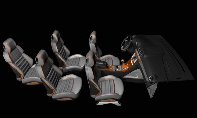 From its exquisitely sculpted steering wheel – with electronic up shift and downshift buttons integrated into bold thumb grips – to the hip-hugging forms of the contoured sports seats, the interior of the SAV Concept is performance orientated.