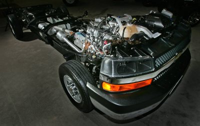 * Revised front floor panel and underbody heat shielding * New interior engine cover * High idle switch added to instrument panel (optional) * Instrument cluster revised to reflect diesel engine functionality * Standard 145-amp alternator * Primary battery located underhood, with secondary battery mounted on left-hand frame rail * Ambulance package equipped with a 50-amp Maxifuse connector at the B- pillar