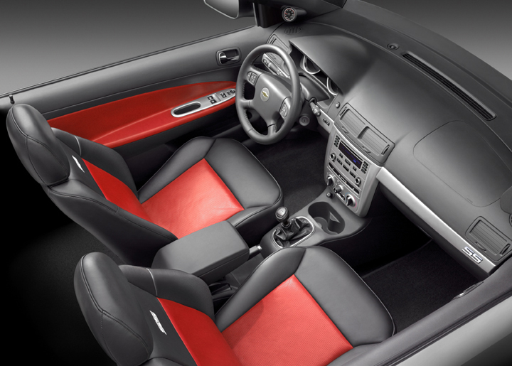 Cobalt base Standard content: 2.2L Ecotec engine 5-speed manual transmission FE1 suspension 15-inch wheels and tires Front disc/rear drum brakes CD radio Height-adjustable steering wheel Height-adjustable driver seat Remote trunk opener Intermittent wipers Floor mats AC with cabin filtration Optional equipment: 4-speed automatic transmission 4-channel ABS Spoiler XM Satellite Radio Uplevel CD radio Power locks with remote Cruise control Roof-rail air bags XM Satellite Radio (coupe only)Cobalt LS, LT (equipment in addition to or substituted for base content) Standard content: 4-speed automatic transmission (standard on LT only) 4-channel ABS Uplevel CD radio Power locks with remote Cruise control Power windows Heated leather seats (standard on LT only) Body-color power outside mirrors Sport cloth upholstery Trunk cargo net Optional equipment: 4-speed automatic transmission (standard on LT) Sunroof Spoiler XM Satellite Radio CD/MP3 uplevel radio Pioneer Premium Audio System with 7 speakers Heated leather seats (standard on LT) Sport Package(16-inch wheels, foglamps, spoiler, white-face gauges, leather wrapped steering wheel and shifter, bright exhaust tip) OnStar Roof-rail air bags SS Supercharged (equipment in addition to or substituted for LS and LT content) Standard content: 2.0 SC supercharged engine 5-speed heavy-duty manual transmission FE5 suspension 18-inch performance wheels and tires 4-wheel disc brakes with ABS Leather-appointed seats with color-keyed inserts Leather-covered steering wheel with radio controls Leather-covered shifter Foglamps Sport exhaust Wing-type spoiler Fascia and rocker extensions Unique instrument cluster A-pillar-mounted boost gauge Pioneer Premium Audio System with 7 speakers Optional content: Roof-rail air bags Sunroof XM Satellite Radio OnStar