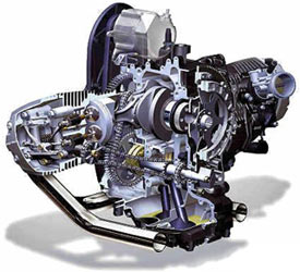 Type Air/oil-cooled 2-cylinder 4-stroke Boxer engine, one camshaft and four valves per cylinder, central compensation shaft