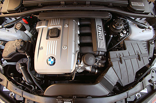 At BMW, the emphasis on technologically advanced, powerful in-line engines continues. N52 engines created for the 3 Series displace 3.0 liters and produce either 215 hp @ 6250 rpm and 185 lb-ft. of torque @ 2750 for the 325i, or 255 horsepower @ 6600 rpm and 220 lb-ft. of torque @ 2750 in the 330i. The difference in power, and the 330i’s price, is due to complex and expensive changes.