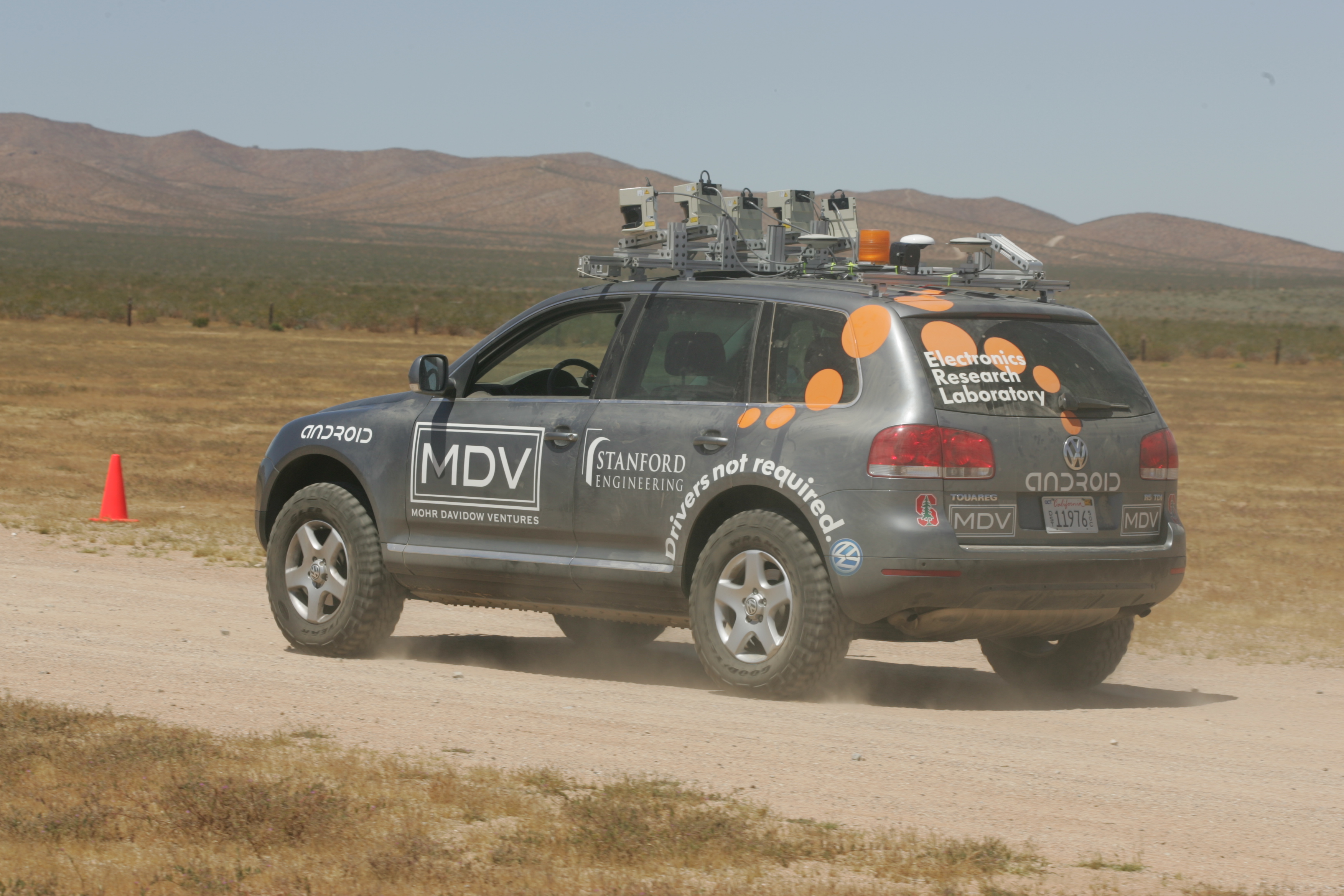 Why is Volkswagen involved? As mentioned, there are plenty of civilian-use possibilities for technologies developed for the DARPA Grand Challenge. And VW has a long history of technological development. The Touareg is intrinsically-suited for autonomous operation, as all of its major systems are already electronically-controlled, and it is eminently capable of handling the conditions expected in the Grand Challenge and worse. And the Electronics Research Laboratory is within walking distance of the Stanford campus.