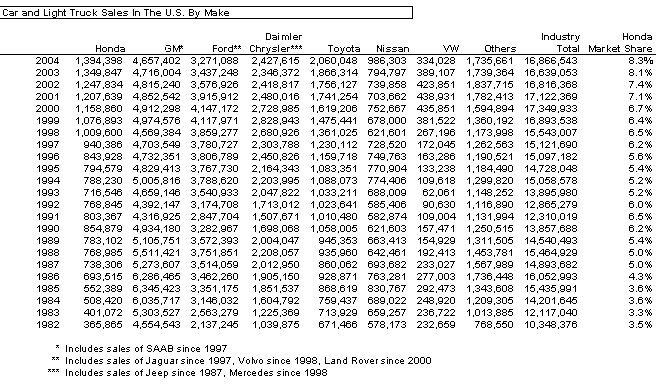 Car and Light Truck Sales in the U.S Scorecard 2005 - 1982