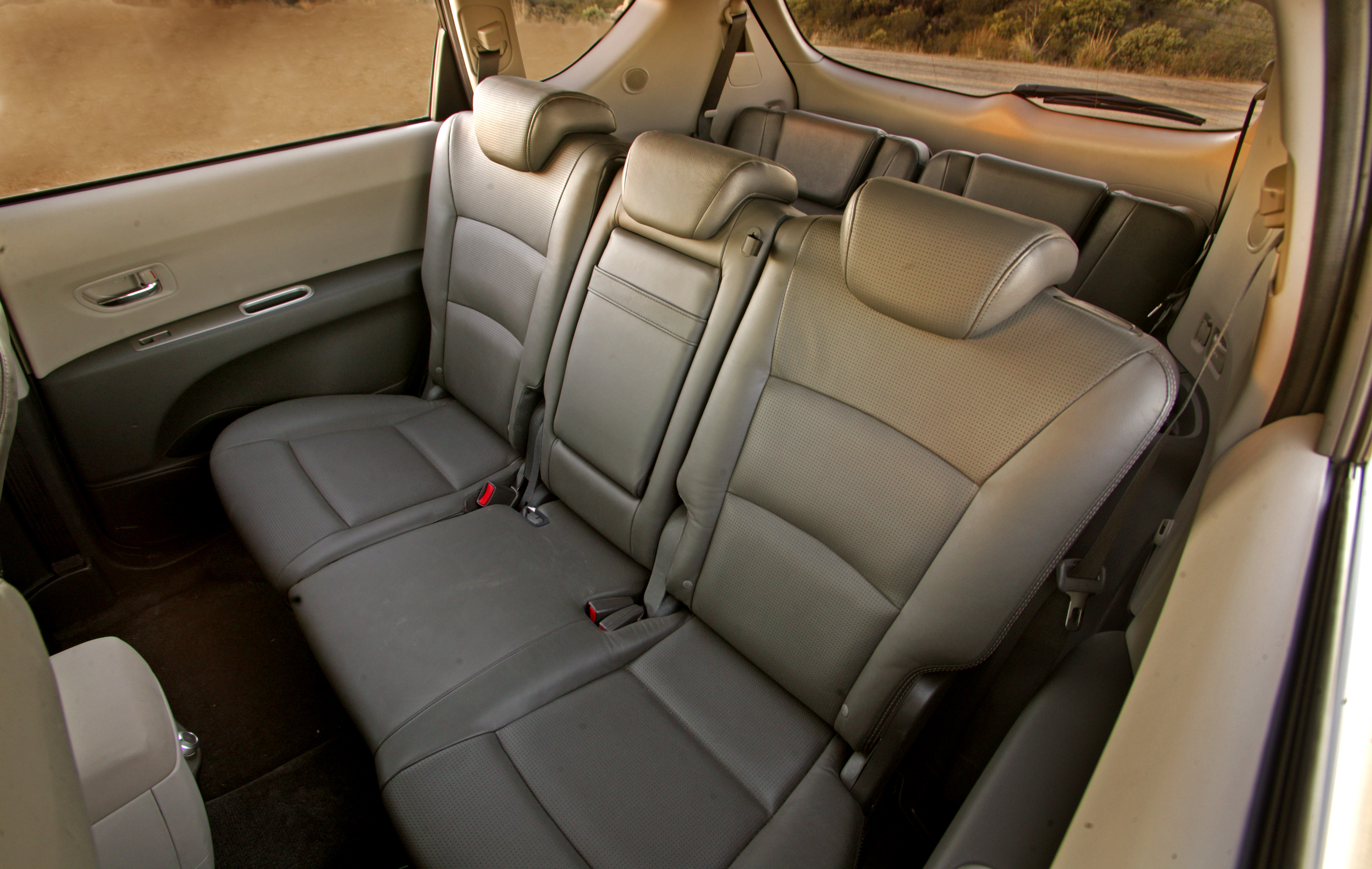 • Leather seat surfaces for front and middle rows; choice of Comfort beige leather with smooth surface or gray Sport with perforated surface