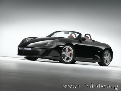 Power and torque are high at any RPM. The basis of this Kompressor engine is a centrifugal compressor with a planetary gearbox -a kind of mechanical turbo charger, which is driven mechanically by a Poly-Rip belt. The maximum boost is 0,5 bar. The engine has a RUF designed intake manifold, modified injectors, sports catalytic converters and a modified electronic engine management system. The water-cooled charge cooler has a cooling water circuit with an electric water pump from the water cooler in the front spoiler. The supercharged 3.8 liter engine of the RK Spyder provides a 420 bhp (305 kW) at 7,000 RPM and 450 Nm torque at 5,500 RPM. The acceleration from 0 - 100 km/h (0 - 62 mph) of the 3.8 liter RK Spyder with a RUF Kompressor Engine takes only 4.5 sec., from 0 - 200 km/h (0 - 125 mph) only 13.8 sec. The maximum speed is 285 km/h (175 mph)."