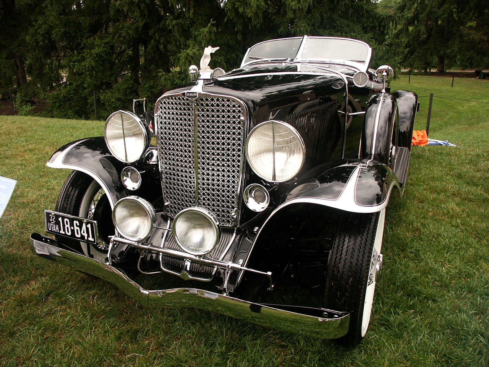 ![]() The sleek Auburn 8-100A Speedster owned by H. DeWayne Ashmead of Fruit Heights UT with LaLique Crystal ‘Naked Lady’ hood ornament. |