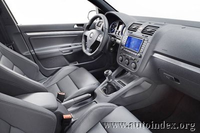 As opposed to the more purist style of the Golf GTI, the R32 top model boasts a dazzling array of standard equipment at no extra price, such as automatic air conditioning (Climatronic), the RCD 300 audio system with ten loudspeakers, anti-theft alarm system plus, multifunction display, automatic anti-dazzle interior mirror, rain sensor, tyre pressure monitor and the complete safety programme comprising six airbags, ESP and brake assistant. The standard bi-xenon headlights light up the night like day.