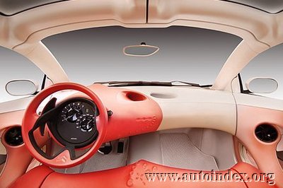 The colours used by C-AirPlay – rarely seen on cars – are designed for contrast. The iridescent white bodywork is also present inside the car, alongside the bright red used for the cabin.